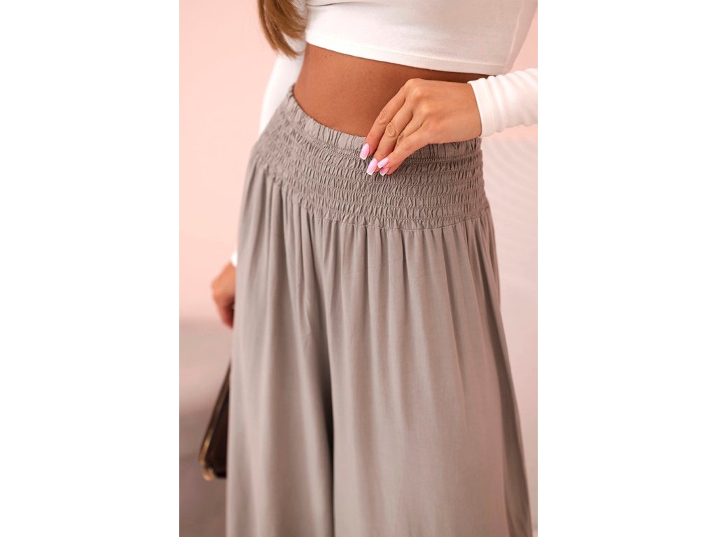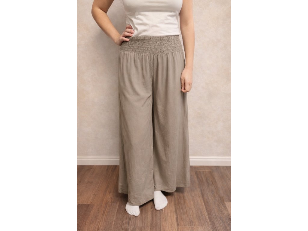 Široké nohavice a rozšířený střih dodávají každému pohybu lehkost a eleganci a elastický pas se skvěle přizpůsobí pasu. Ideální na procházku, nákupy i na pláž – stačí přidat jednoduchý top a je to! Univerzální model, který by neměl chybět ve vašem šatníku. Velikost je univerzální a hodí se pro ženy velikosti S, M nebo L.