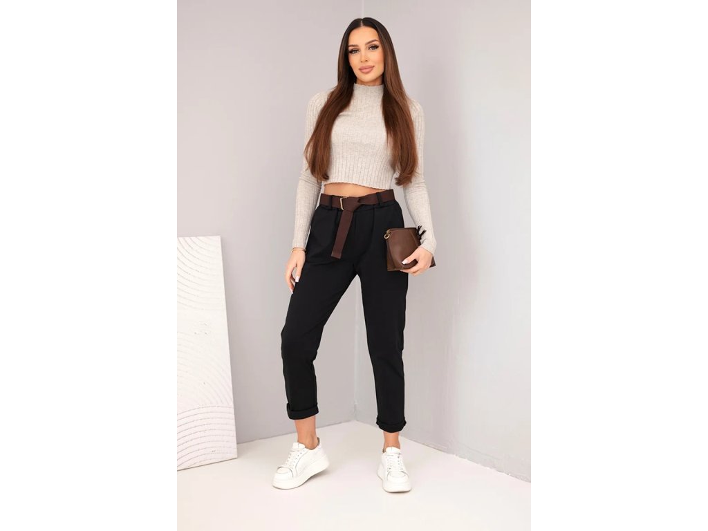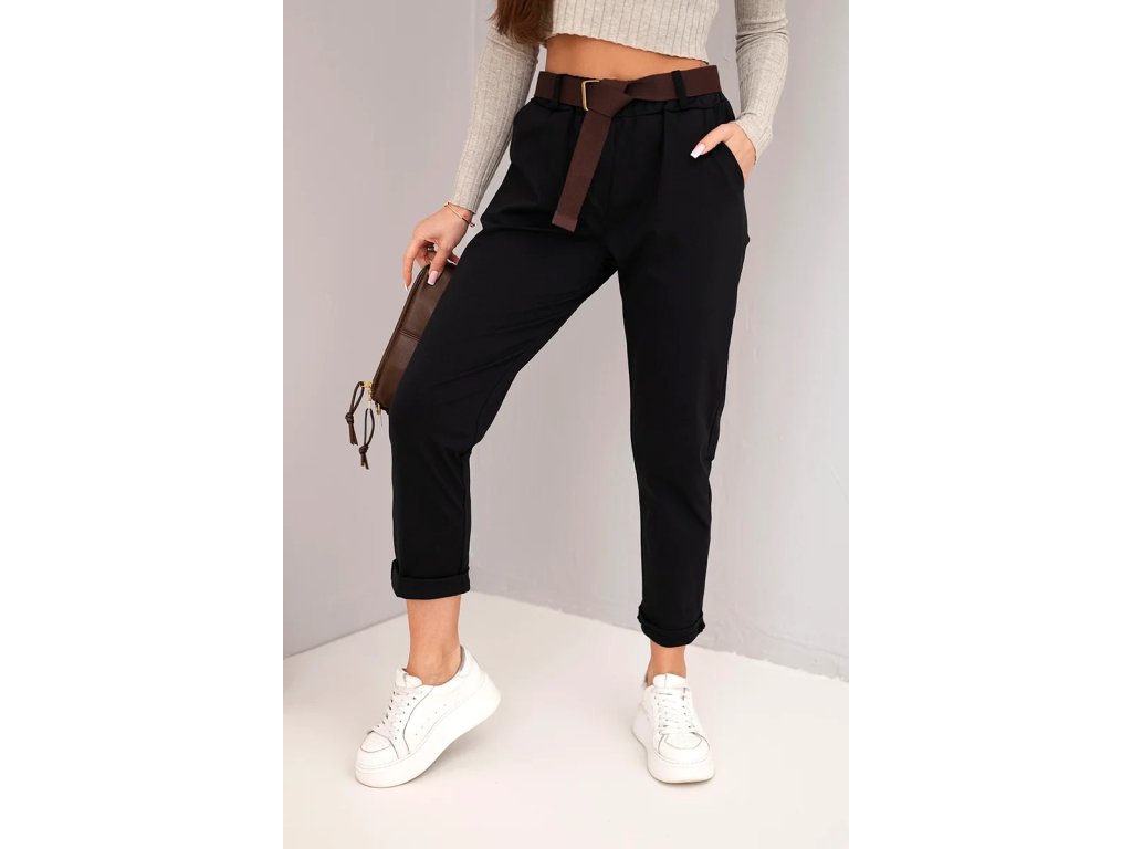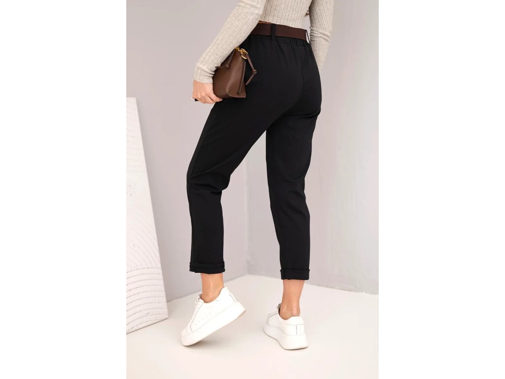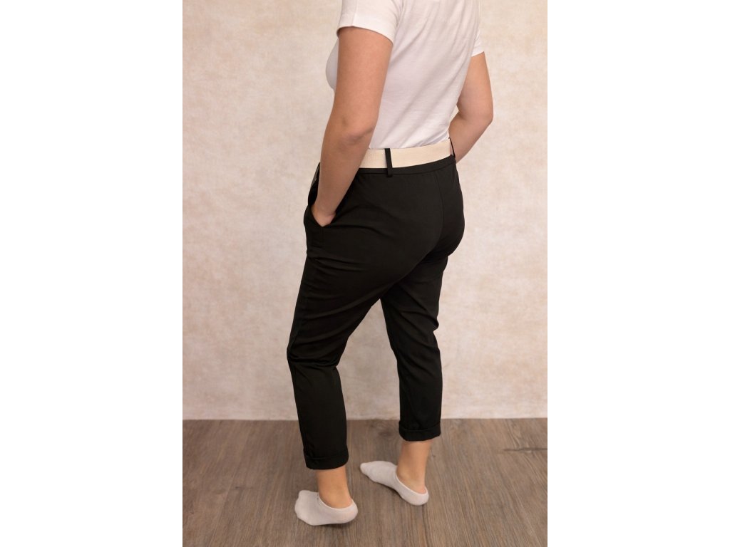 Vyrobeny z vysoce kvalitního materiálu, zajišťují svobodu pohybu a dokonalé přizpůsobení postavě. Mají elastický pas a praktický pásek, který zvýrazňuje pas. Jejich klasický střih s ohrnutým nohavicím dělá, že se hodí jak pro každodenní, tak i pro elegantnější stylizace. Skvěle se hodí v kombinaci s košilí nebo lehkým svetrem. Velikost je univerzální a bude vhodná pro dámy ve velikosti S, M nebo L.