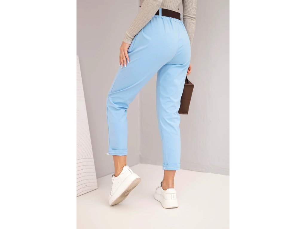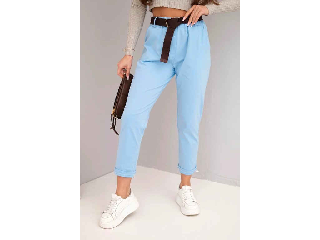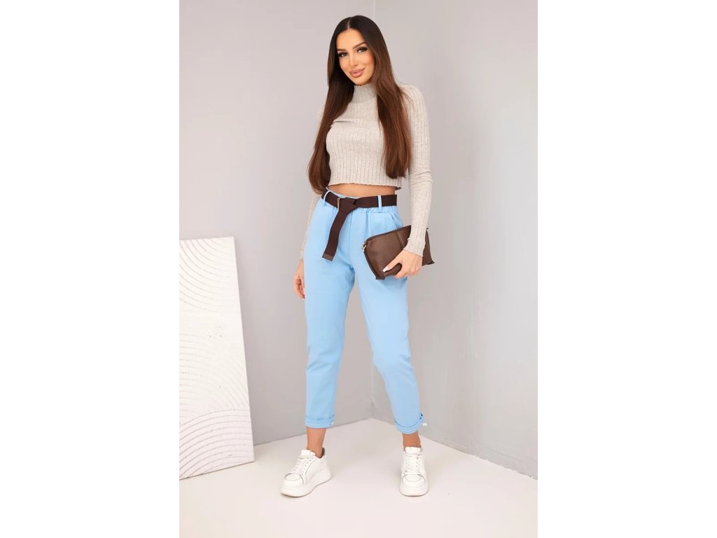 Vyrobeny z vysoce kvalitního materiálu, zajišťují svobodu pohybu a dokonalé přizpůsobení postavě. Mají elastický pas a praktický pásek, který zvýrazňuje pas. Jejich klasický střih s ohrnutým nohavicím dělá, že se hodí jak pro každodenní, tak i pro elegantnější stylizace. Skvěle se hodí v kombinaci s košilí nebo lehkým svetrem. Velikost je univerzální a bude vhodná pro dámy ve velikosti S, M nebo L.