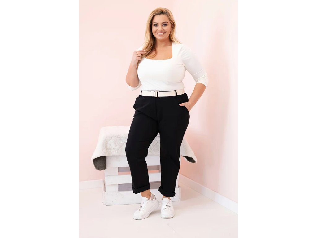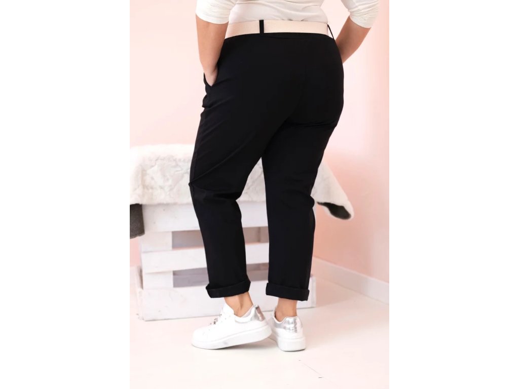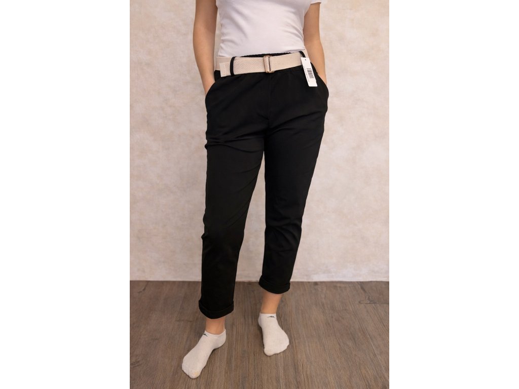 Vyrobené z vysoce kvalitní bavlny s příměsí elastanu a polyamidu se skvěle přizpůsobí postavě a zajišťují volnost pohybu. Pásek v pase zdůrazňuje ženskou siluetu a ohrnuté nohavice dodávají celku moderní vzhled.