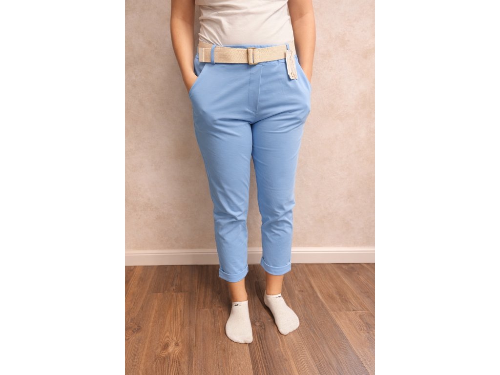 Vyrobené z vysoce kvalitní bavlny s příměsí elastanu a polyamidu se skvěle přizpůsobí postavě a zajišťují volnost pohybu. Pásek v pase zdůrazňuje ženskou siluetu a ohrnuté nohavice dodávají celku moderní vzhled.